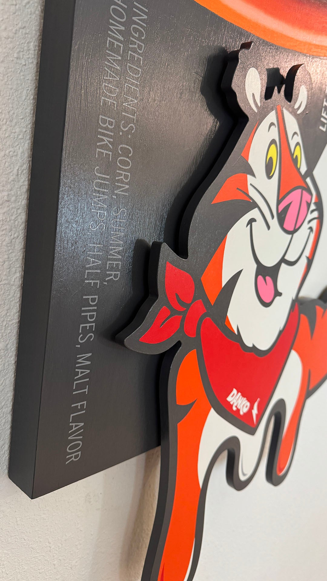 This piece extends the themes I explored in my recent exhibition Monuments of Play at the SAM Gallery at the Seattle Art Museum where optimism, cultural iconography, and the monumentalization of toys were central. It is also a further riff on the layered triptychs of my Box Top Series, where I reframe cereal packaging as cultural wayfinders. I see these influences as an ongoing conversation—a porous, evolving field where memory, mass media, and fine art collide. I feel that Hello Tiger sits firmly in that exchange, remixing the ephemera that we consume and serving back how it has shaped us.